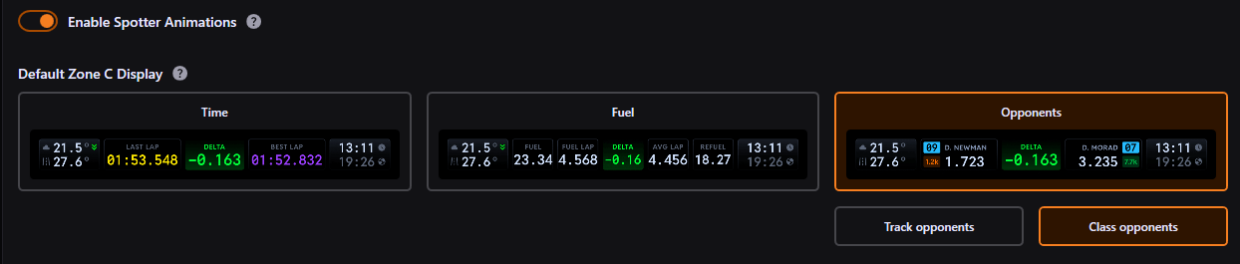 Last detail I really like on the DNR dash: the lower strip. It’s designed to show “always useful” information, but not necessarily the same thing in every situation. In practice, I use it as a switch between two essentials in endurance: fuel data or timing data.